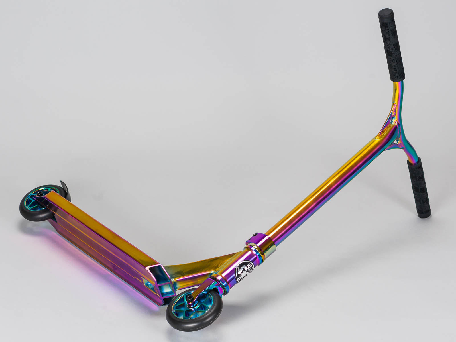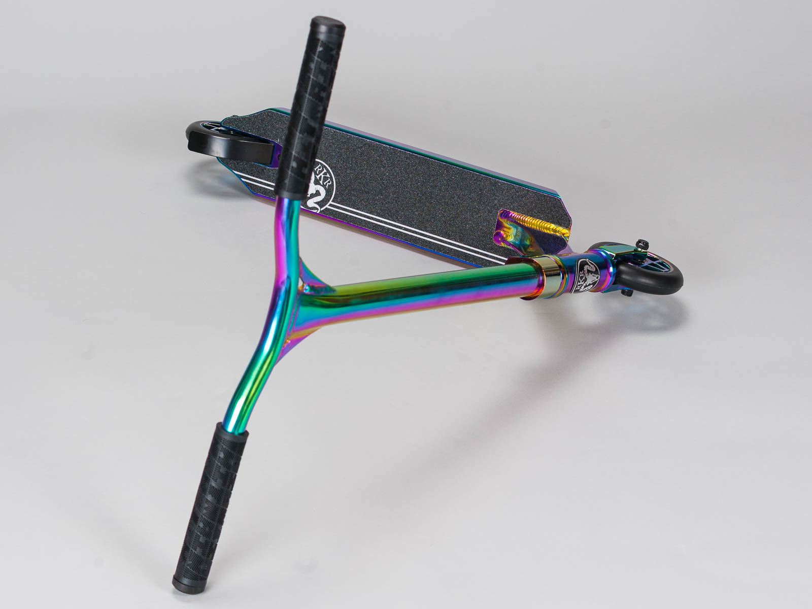 Over the years, we have seen many young riders struggling with scooters that were simply too big and heavy for them to ride and trick properly. We wanted our first scooter to be ready to shred in various sizes from small to large and we didn’t want kids to be cutting and shutting their scooters (let’s face it, most parents don’t realise they need to get the scooter sized to their child anyway!). We wanted our Viral scooters to be light, sick and to fit the kids that would be riding them, straight out of the box. Alongside a pro level spec, the viral is ready to shred!
